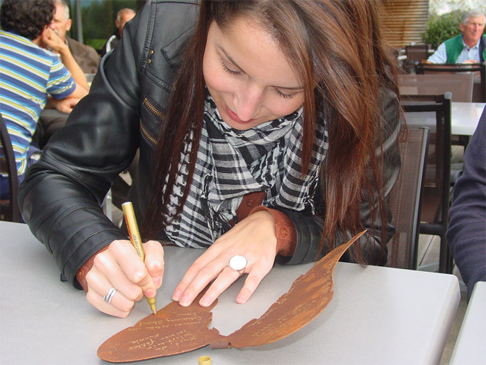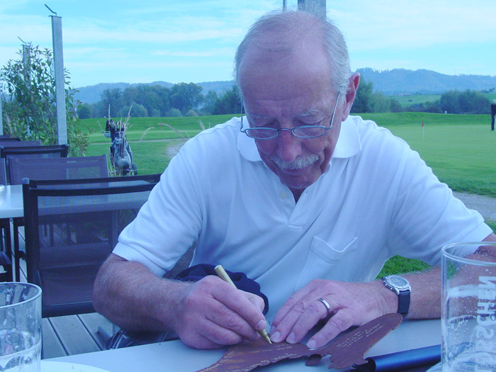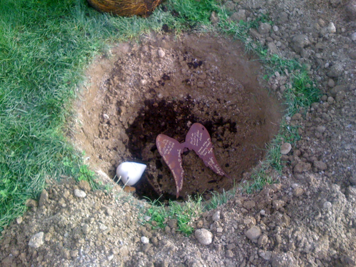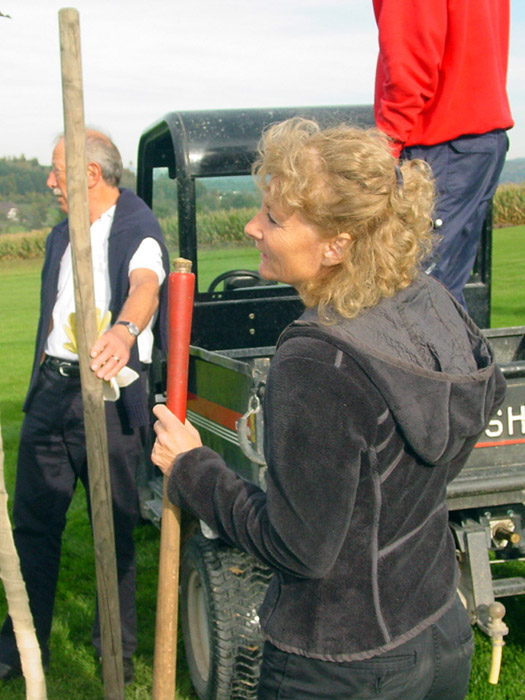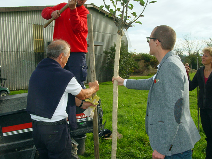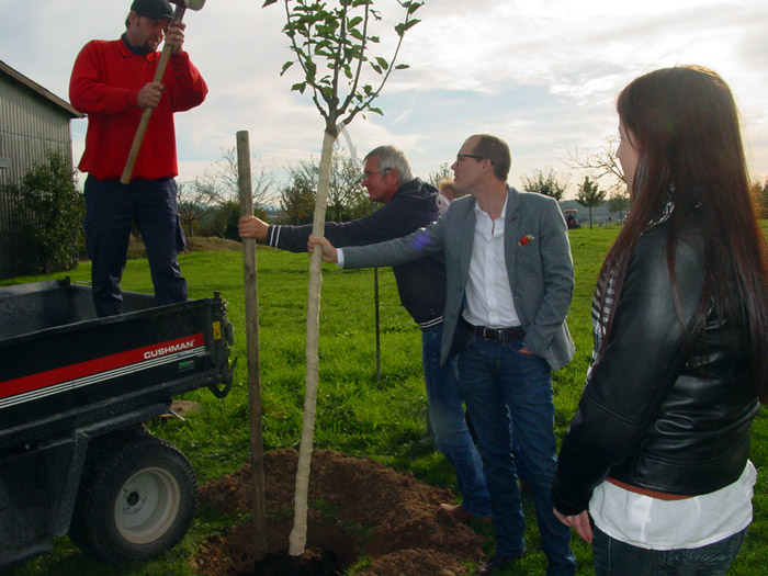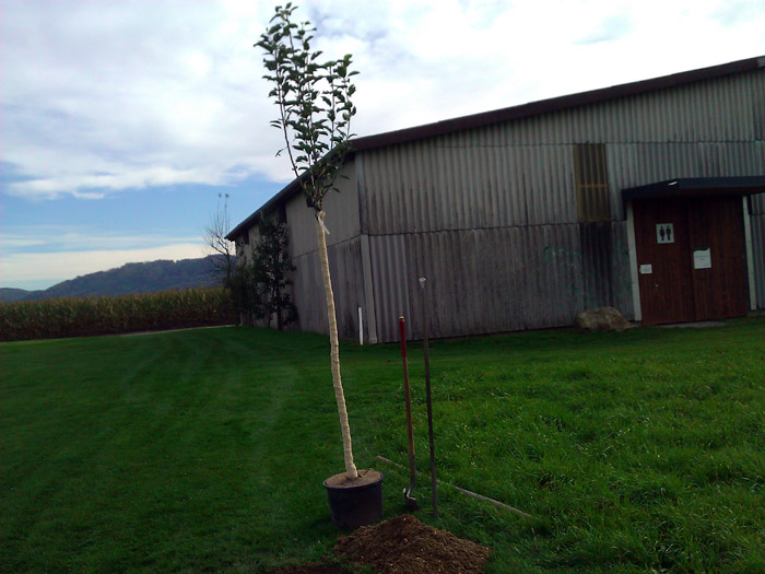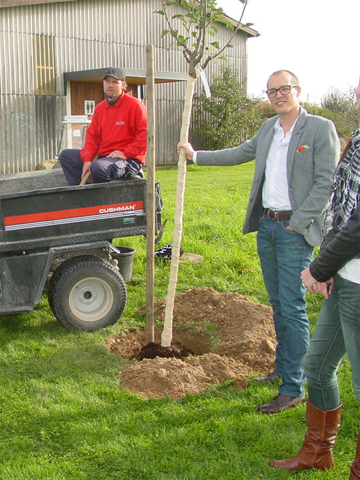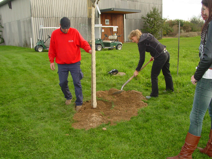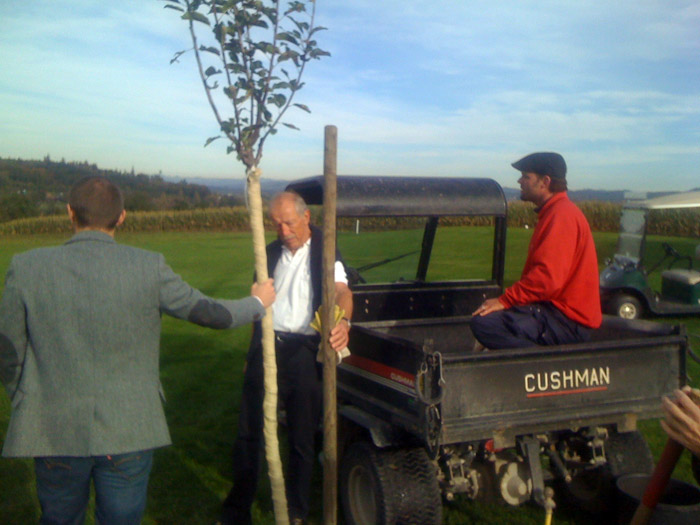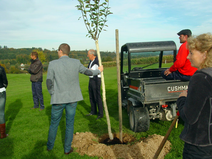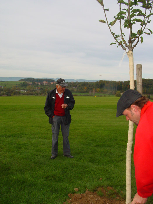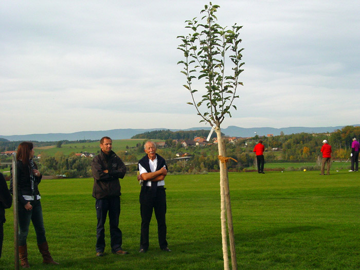 an seinem Lieblingsloch 16 einen Apfelbaum gepflanzt.
